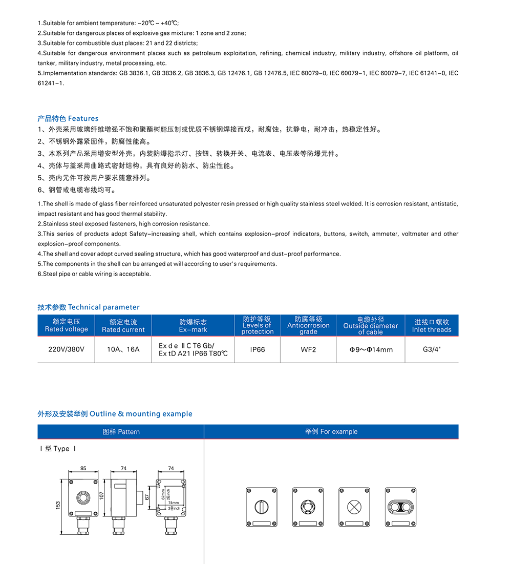 BXK8050系列防爆防腐操作柱(lB、lIC、DIP)
